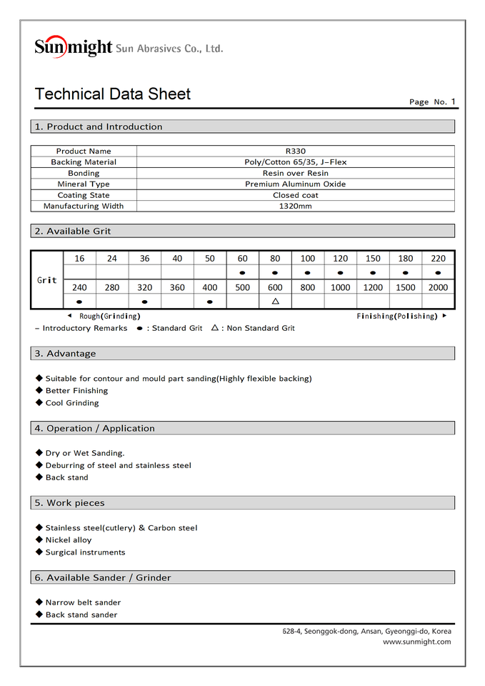 Sun Might R330 Aluminum Oxide Grain Long Lasting Abrasive Belt 2000x50mm Stainless Steel Grinding and Polishing