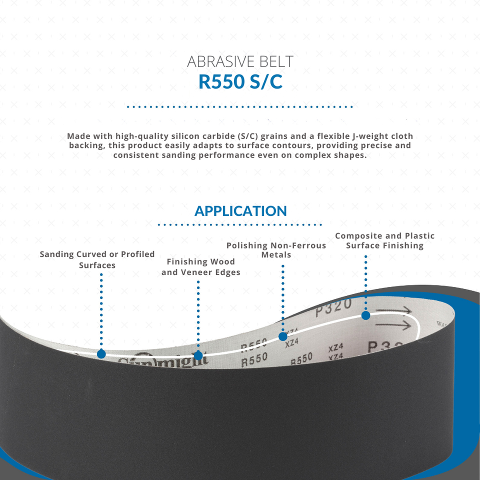 Sun Might R550 1250x100mm Silicon Carbide Finishing Belt for MDF, Plastic & Wood Trim Private Label Customizable OEM ODM OBM