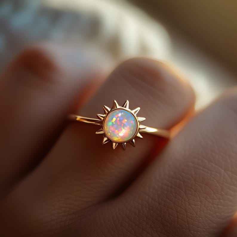 Sun Opal Adjustable Ring White Fire Opal Minimalist Geometric Stacking Ring 925 Sterling Silver IGI Certified Wedding Gift Mom