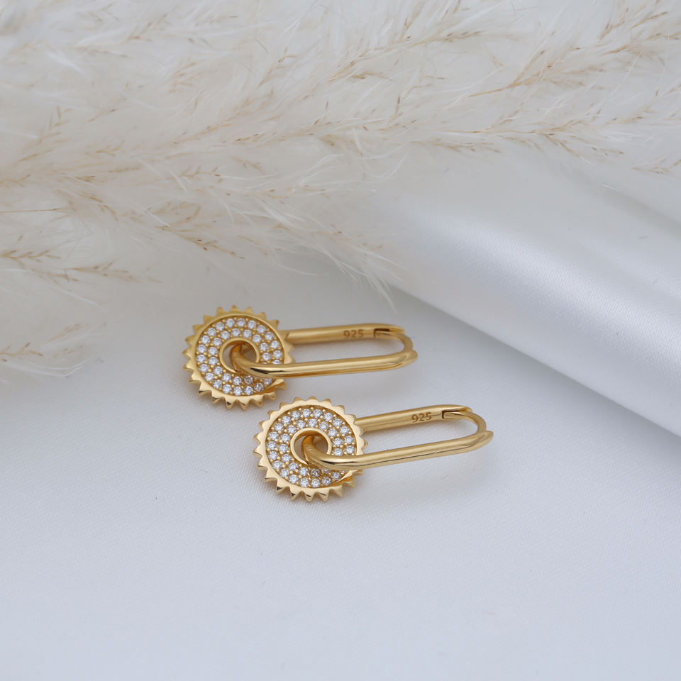 Sun Shape Clear Zircon Stone Design Turkish Handmade Wholesale 925 Sterling Silver Dangle Earrings