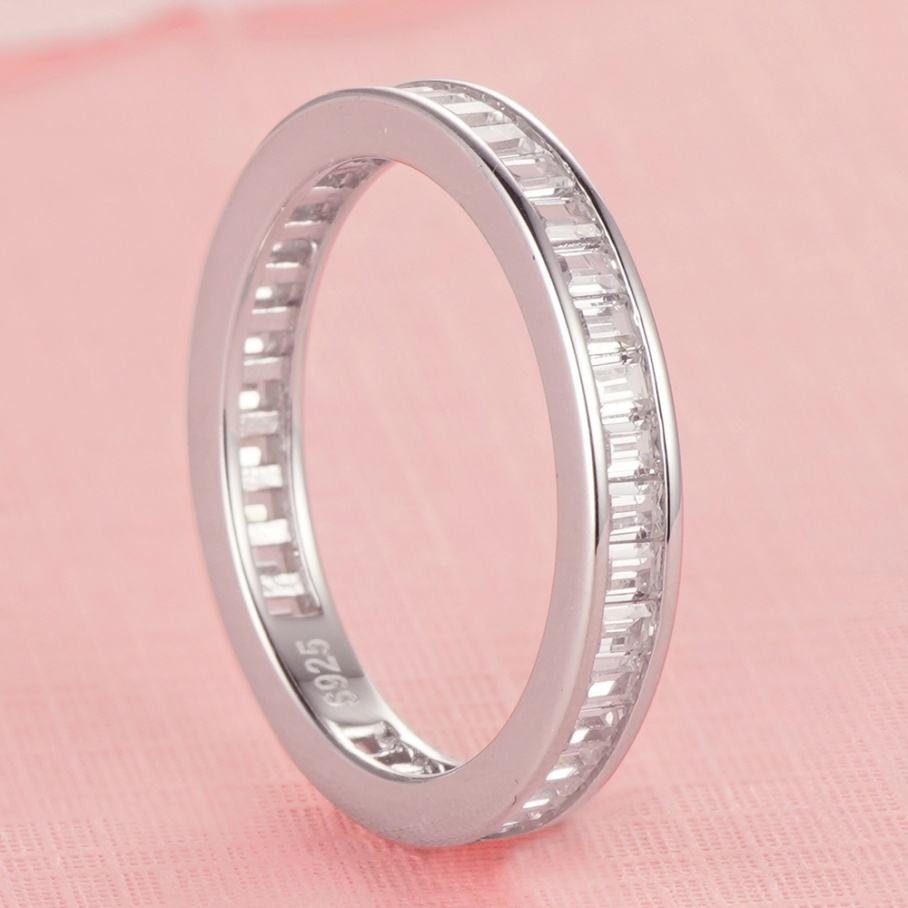 Sun Star TL-366 Fine Jewelry Channel Set Full Eternity CZ 925 Sterling Silver Rhodium Plated Wedding Party Rings Classic Design