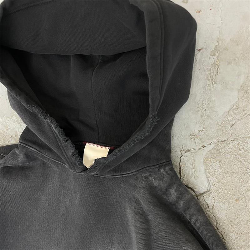 Sun Washed Heavyweight Pullover Hoodie 100% Cotton Vintage Stone Acid Wash Distressed Enzyme Wash Technique for