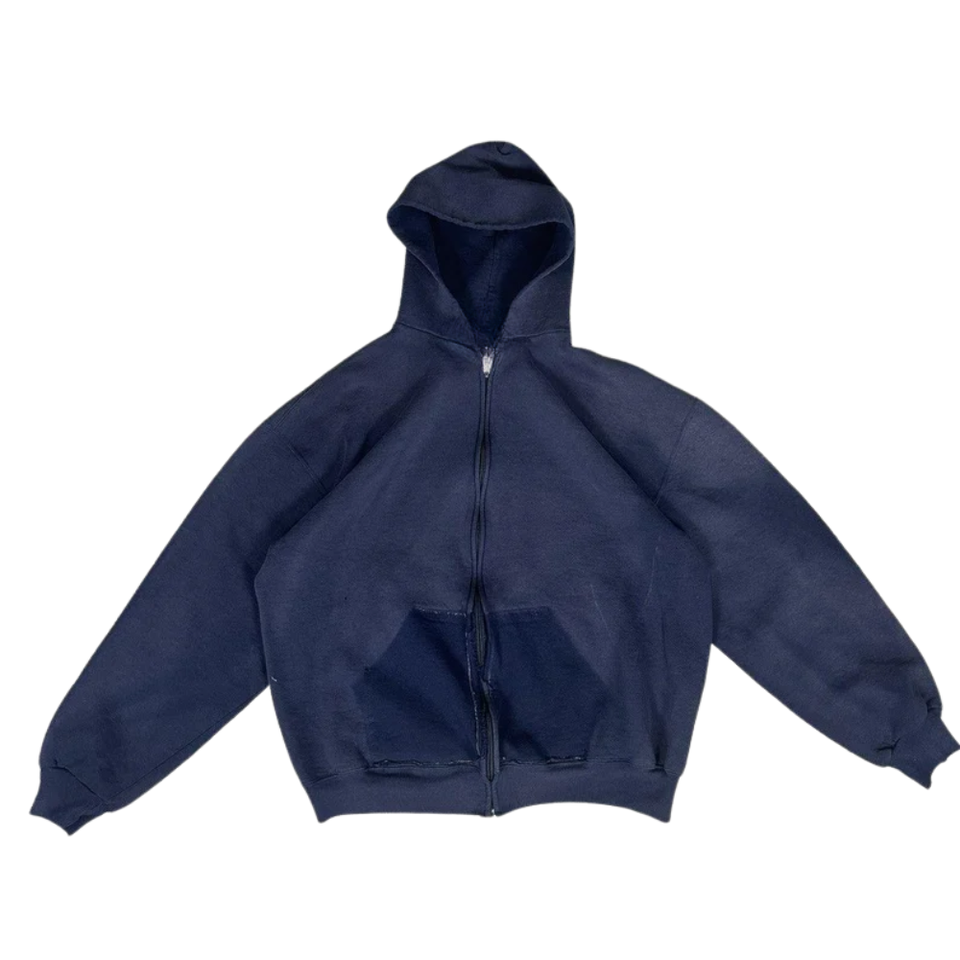 Sun faded washed navy zip hoodie men oversized cotton sweatshirt full zip streetwear hoodie loose fit casual fleece Hoodies Sale