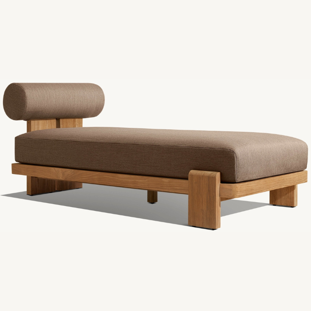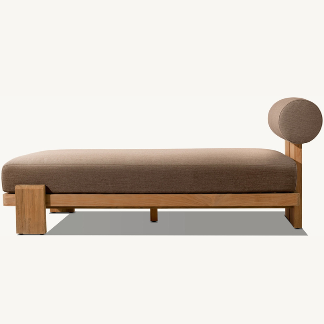 Sun lounger made of teak wood with soft cushions. Sun lounger made of teak wood for outdoor use Simple modern style