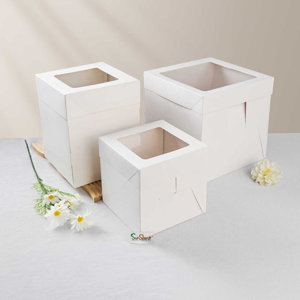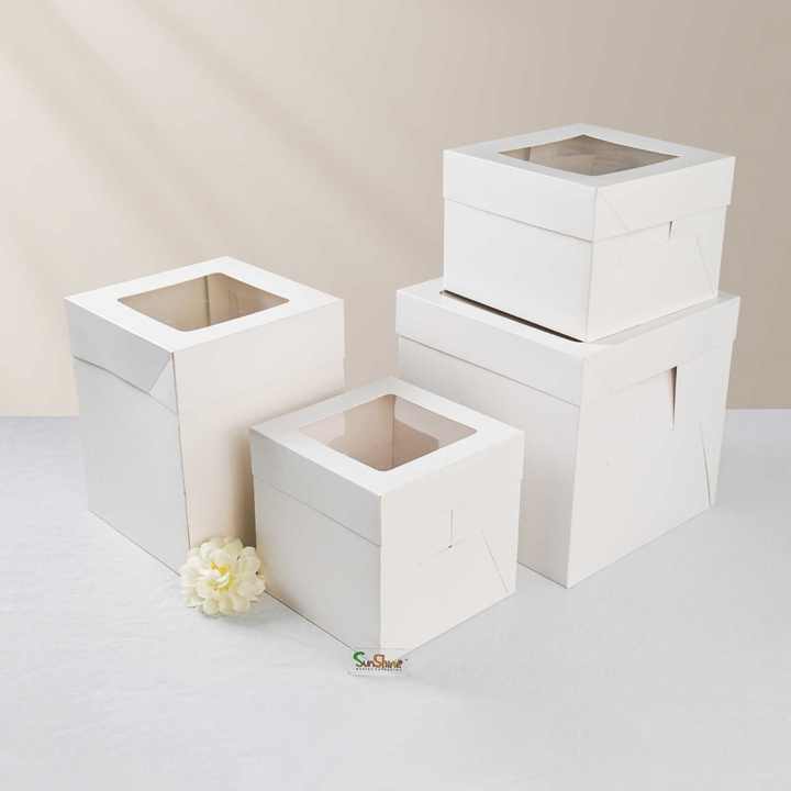 SunShine Customized White Paper Cake Box Tall Cake 8 12 Inches Packing Container Wedding Cake Baking Gift Packaging White