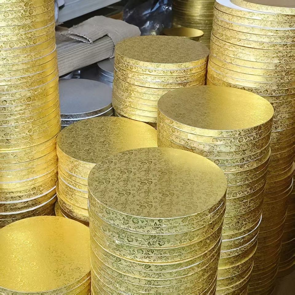 SunShine Wholesale 4 Inch 5 Inch Gold White Round 3mm Thick Scalloped Round Shape Foil Paper Cake Boards