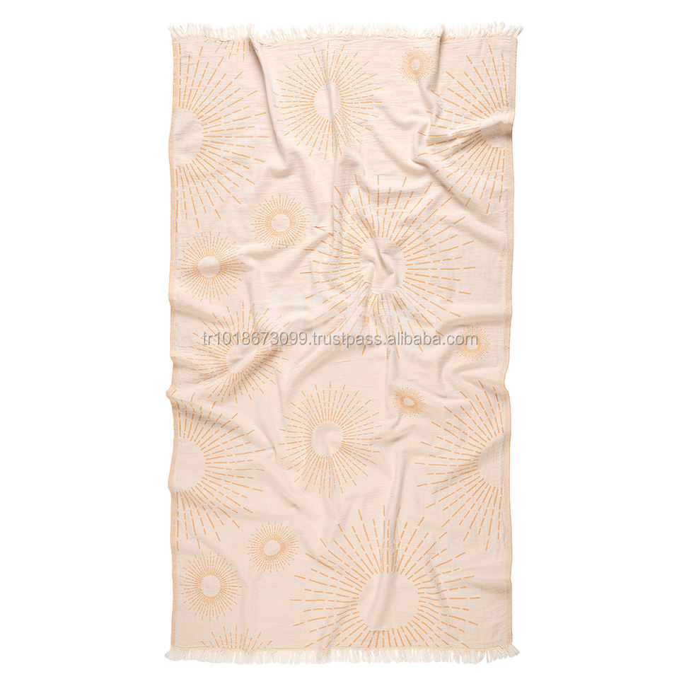 Sunburst Clay Turkish Towel 100% Cotton - Picnic Beach Blanket, Bed Cover, Multiple Use Jacquard
