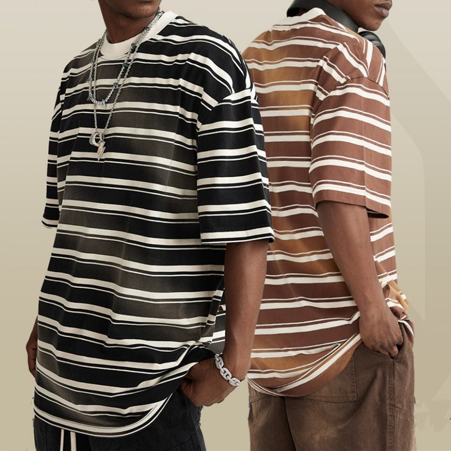 Product name:Sunfaded Stripped White and Coffee O Neck t Shirt