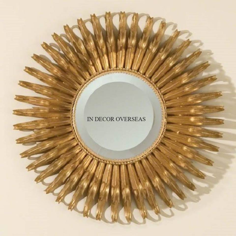 Sunflower Designer High Standard Quality Metal Gold Plated Framed Round Shape Wall Mirror For Home And Hotel Decor Supplies