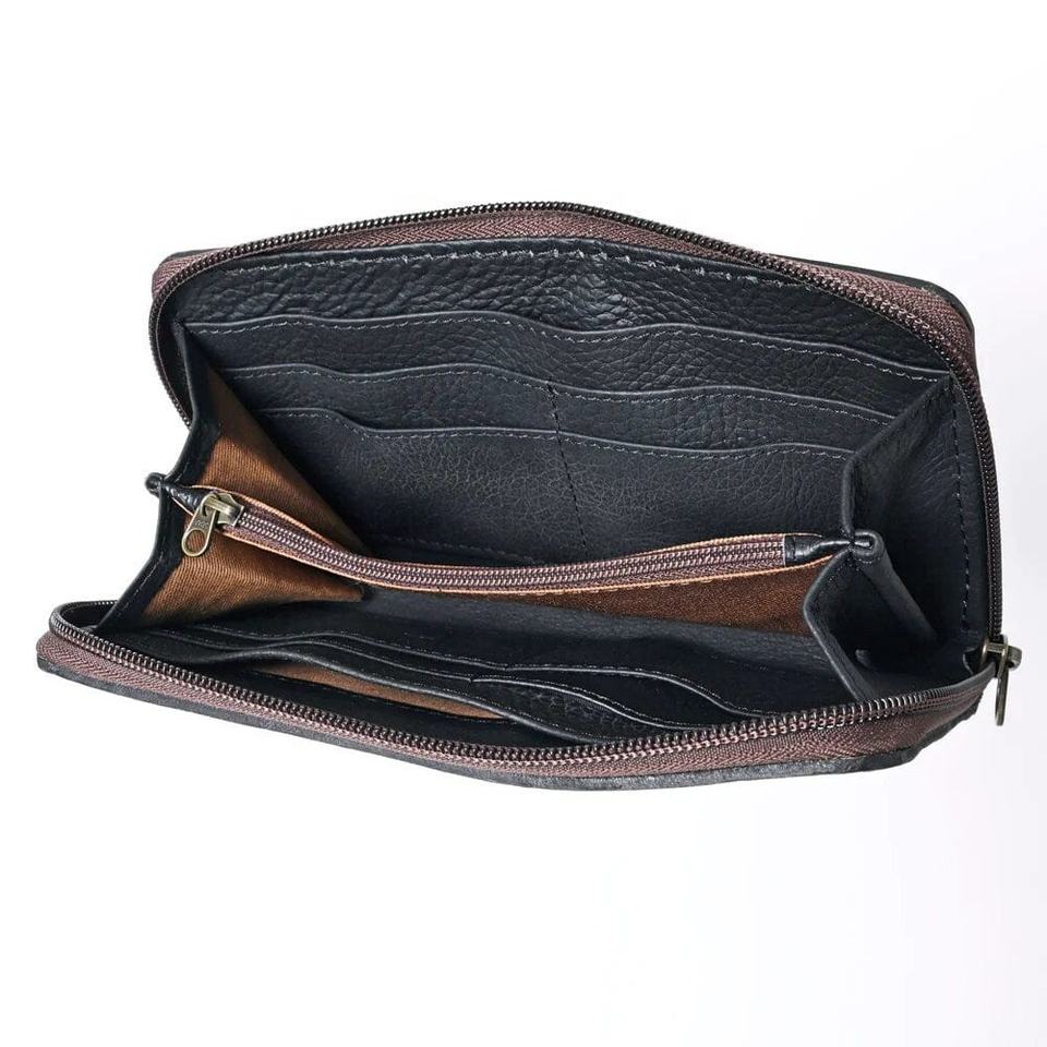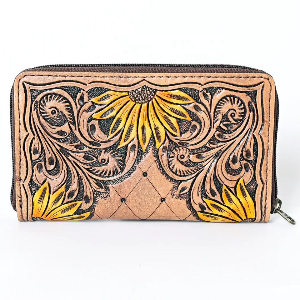 Autumn Collection Sunflower Tooled Genuine Leather Wallet Western Bohemian Hand Tooling Tassel Decoration Best Leather Custom