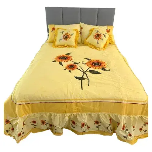 Sunflowers Double Quilt Matrimonial Size Embroidered Classic Home Bedding All Season Use