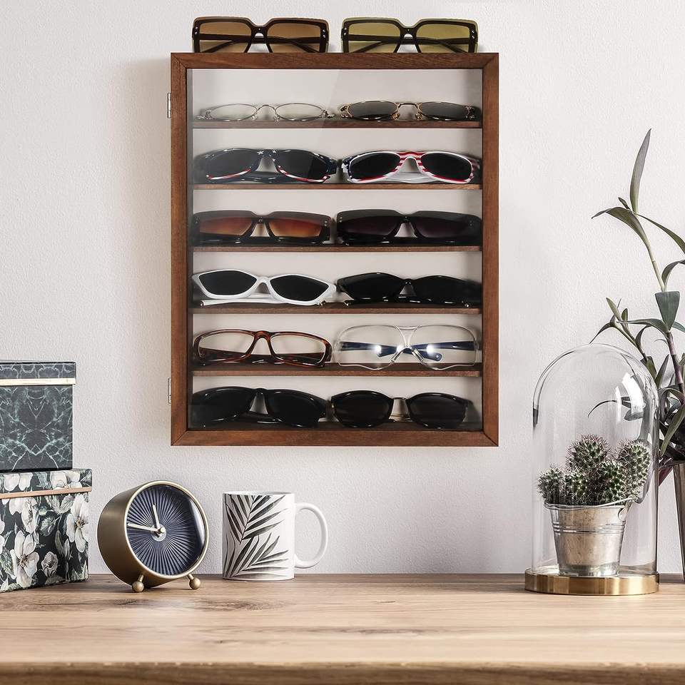 Sunglasses Organizer Storage Wall Mounted: 13 X 15.6 Inches Eyewear Display Case Rustic Wood Eyeglasses Holder Large Glasses