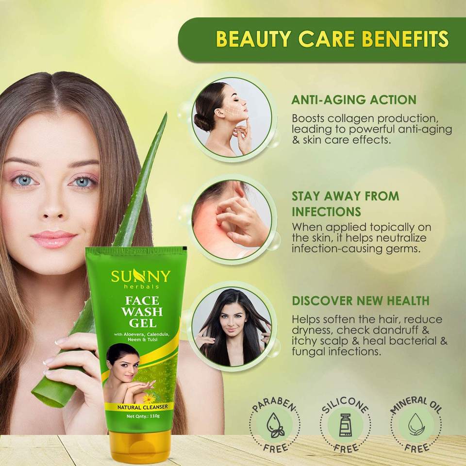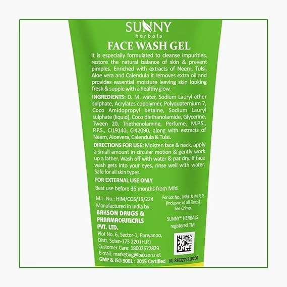 Sunny Face Wash Gel Enriched With Aloevera, Neem & Tulsi for Cleansing, Preventing Pimples & Removing Extra Oil | Moisturises