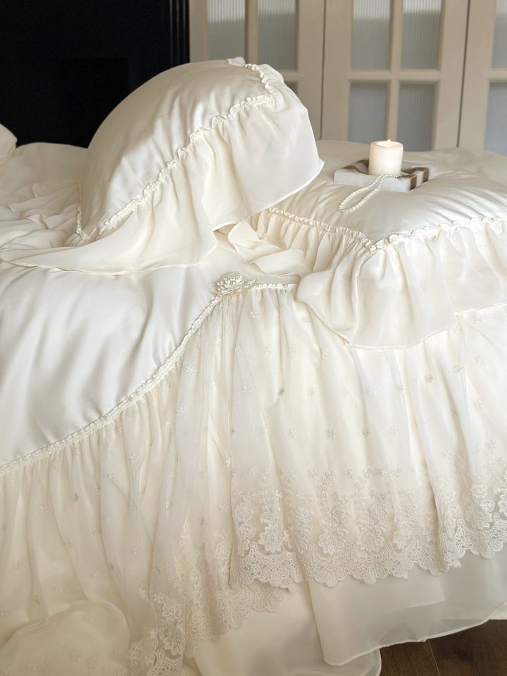 Sunny French Style Lace Embroidery 100% Cotton Duvet Cover Set 600TC Four Seasons Use Solid Vintage Air-permeable