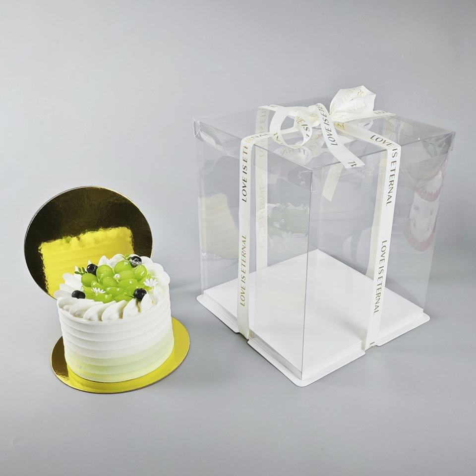Sunshine Custom Cake Box with Ribbon Handle Board 8 10inch Cake Packaging with Window Cake Packaging Box