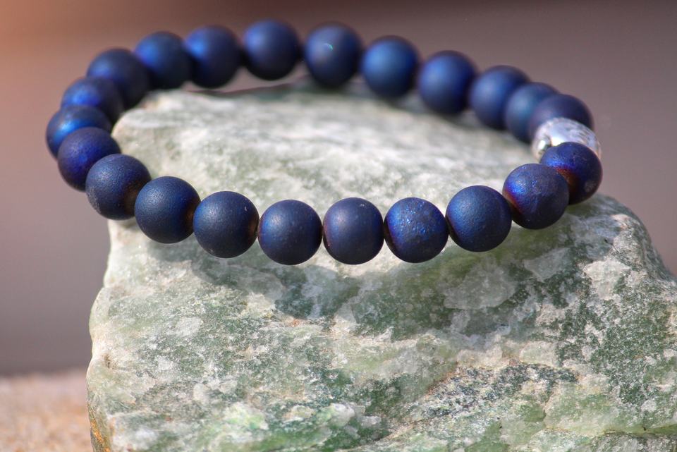 Sunsitara Unisex Buddha Yoga Blue 8MM Adjustable Charm Bracelet Classic Druzy Agate Bangles Number-shaped Pattern Party Wedding