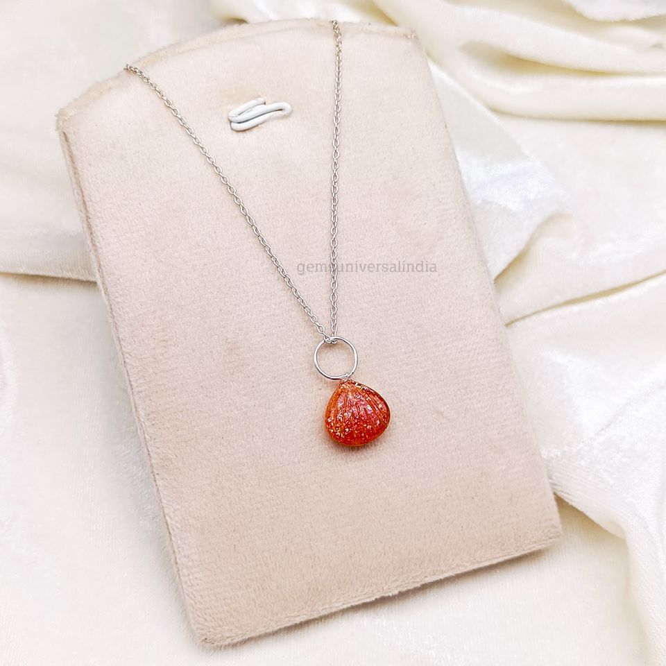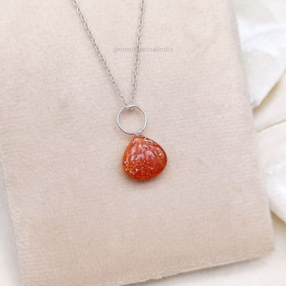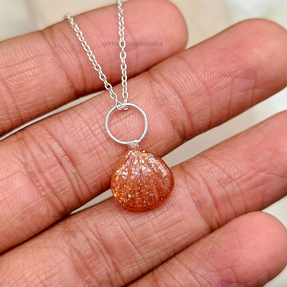 Product name:Sunstone Shell Carved 925 Silver Necklace