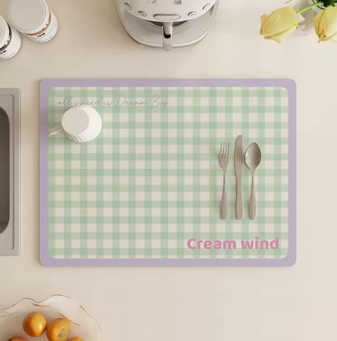 Super Absorbent Cute Square Rubber Heat Resistant Dish Drying Mat Quick Dry Kitchen Counter Bar Table Accessory Cuttable Mat