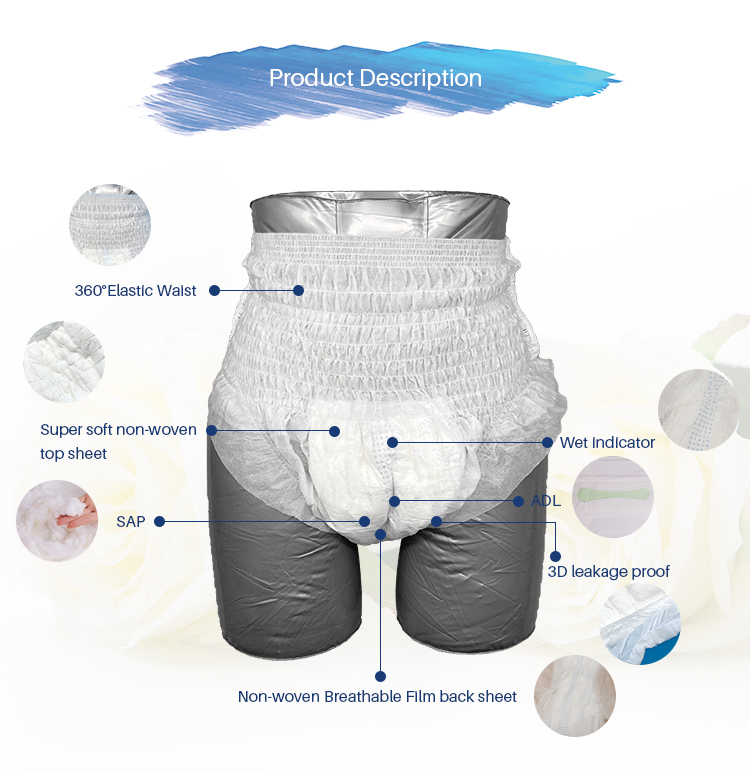 Super Absorbent Disposable Adult Diaper Pants Breathable Side Tearable for Elderly Care Free Sample