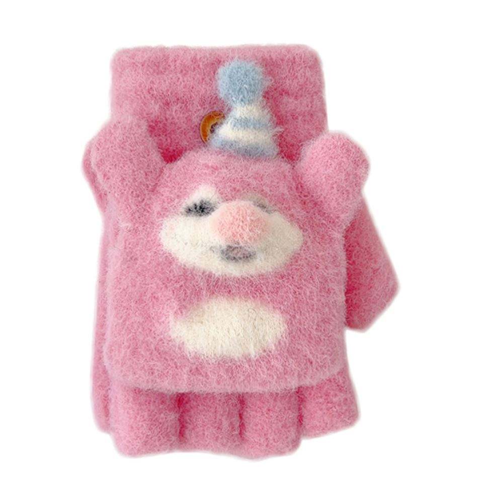Super Baby Half Flip Children's Gloves Cold Protection Thickened Cycling Snow Exposed Finger Writing Five Fingers