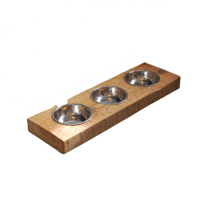Super Bamboo Stand Feeding Station Tray Pet Bowls & Feeders Cat and Raised Dog Bowl With Triple Stainless Steel Bowls