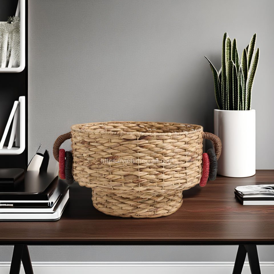 Super Cheap Durable Stainless Steel Water Hyacinth Storage Basket Vietnam Handicraft with Two Handles Wholesale Storage Box Bin
