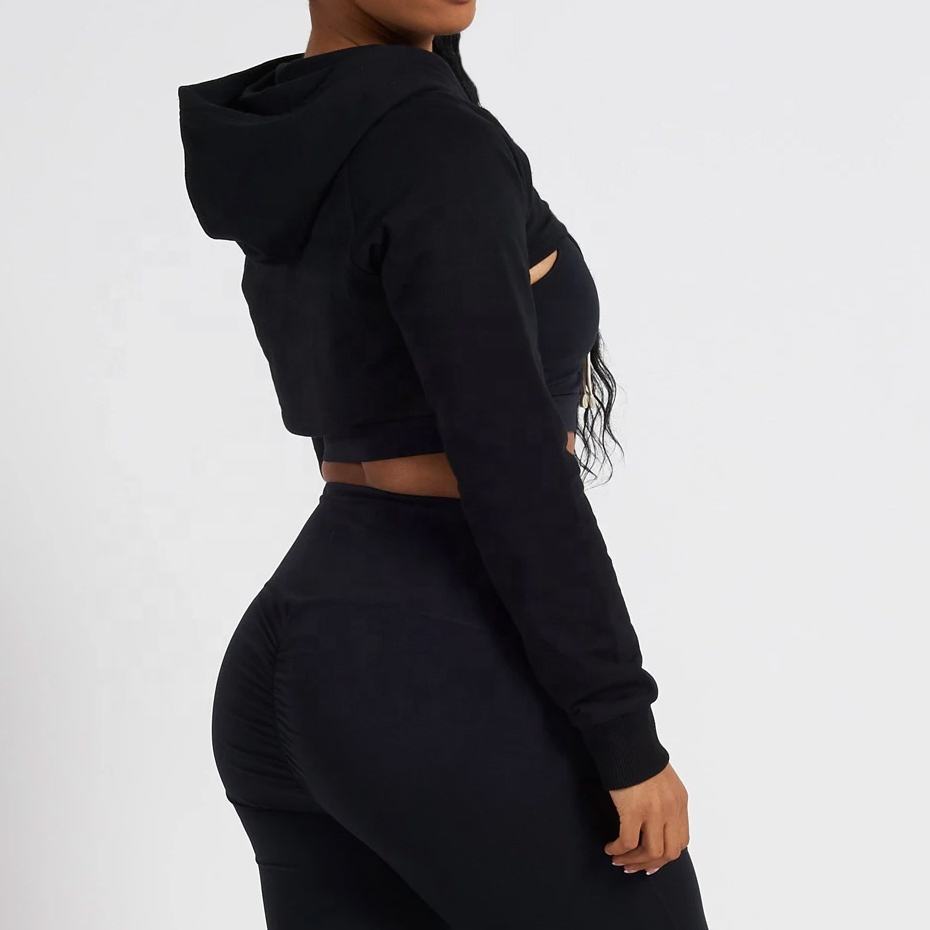 Super Crop Hoodie Women High Quality Anti-Wrinkle Knitted Sweatshirt Embroidered Cutout Backless Long Sleeve Front Logo Autumn