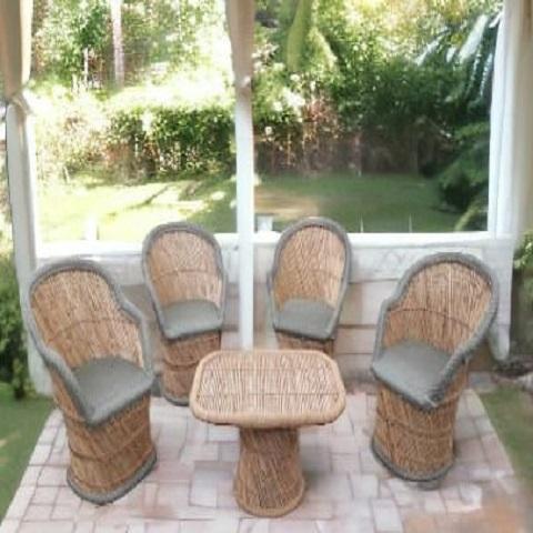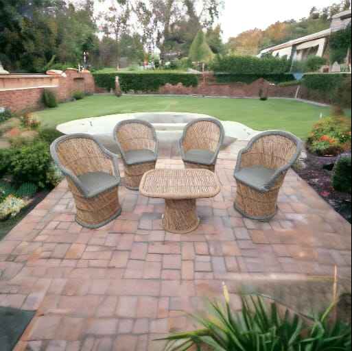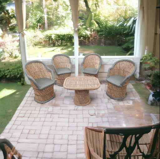 Super Deluxe Bamboo Garden Patio Furniture Set Indoor Outdoor Use Villa Balcony Outdoor Sofa Chair Indoor Table Cushion Included