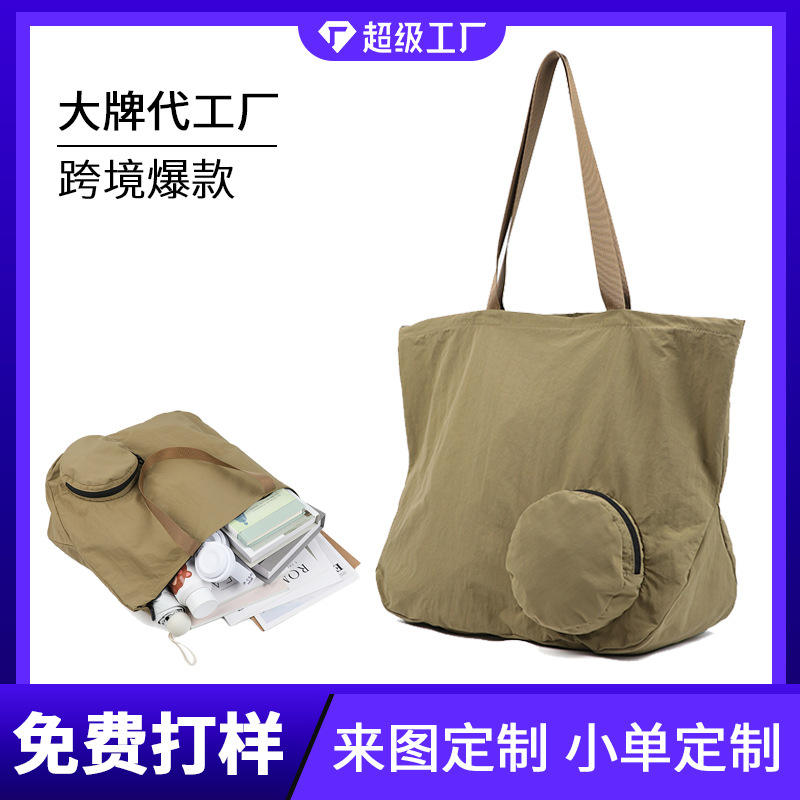 Super Factory Foldable Tote Bag Khaki Nylon Large Capacity Portable Shoulder Bag With Zipper And Phone Pouch Spring 2025