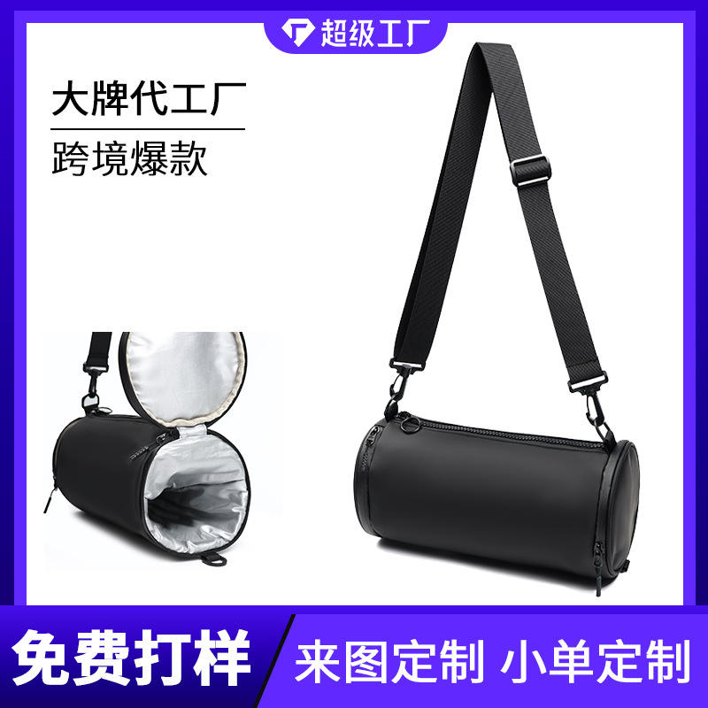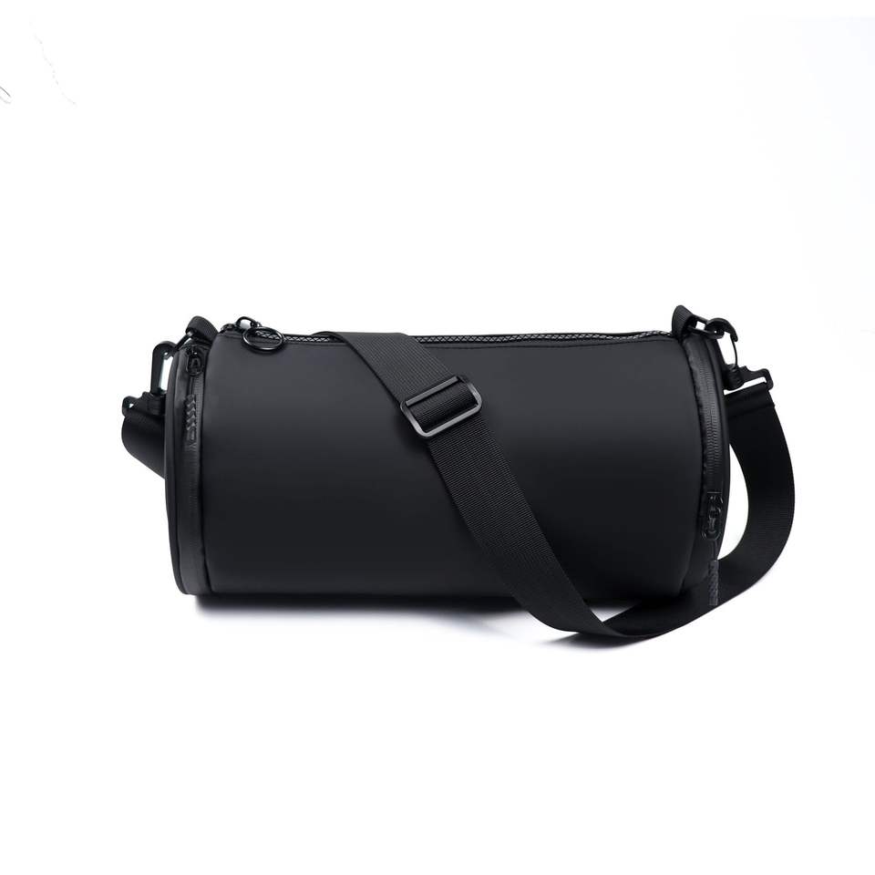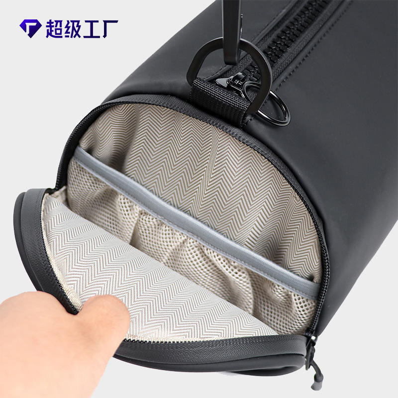 Super Factory Unisex Cylindrical Shoulder Bag Black Waterproof Detachable Strap Outdoor Sports Crossbody Bag