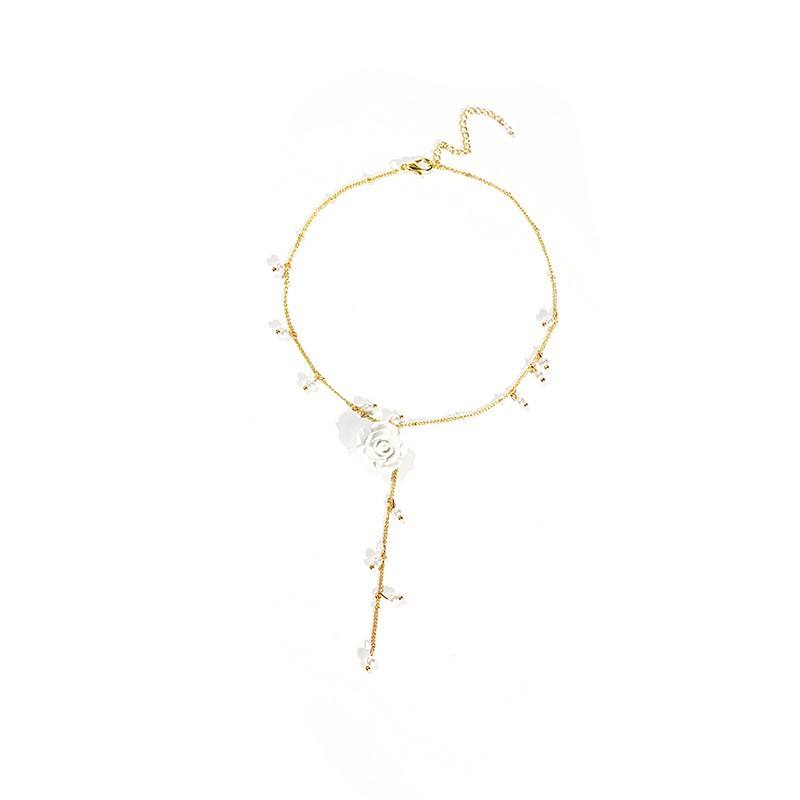 Super Fairy Flower Vintage Pearl Pendant Link Chain Necklace Light Luxury Design Long Collarbone Female