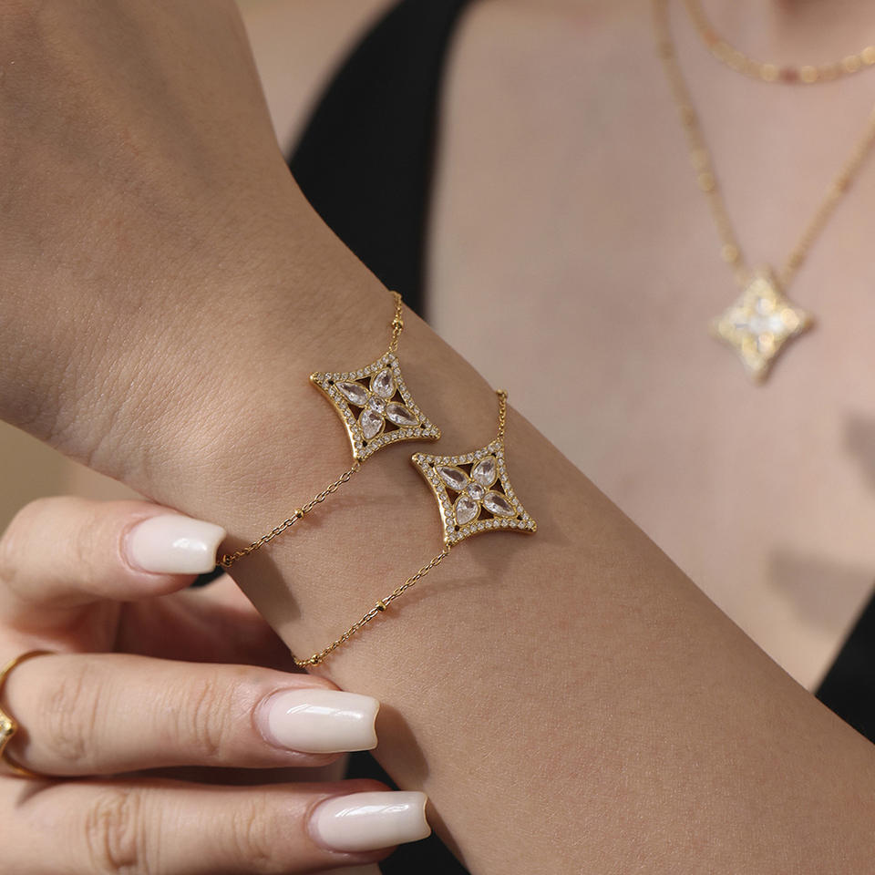 Super Flash Zircon Diamond-Shaped Small Flower Stainless Steel Necklace Ring Accessory for Women Versatile Gold for Weddings