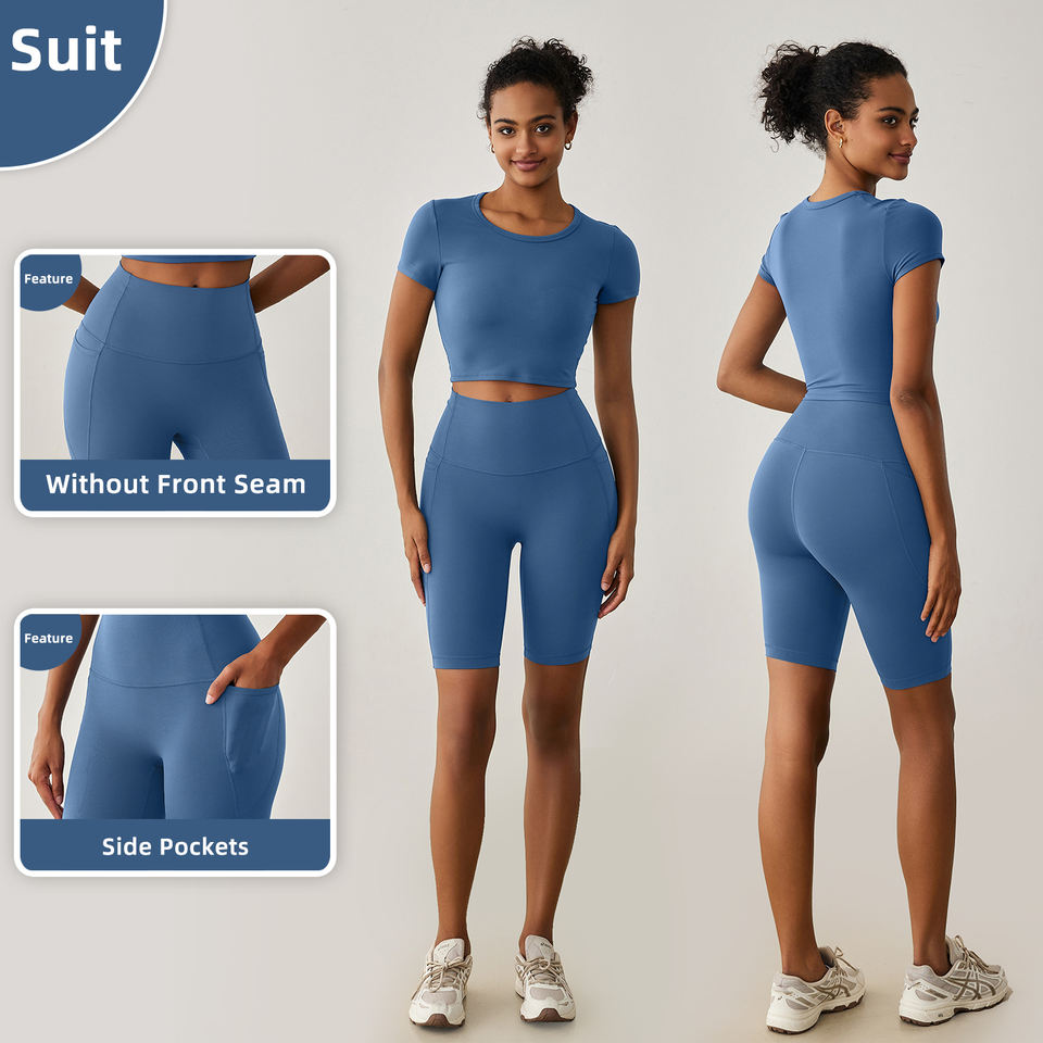 Super High Waist Fitness Leggings Side Pocket Biker Shorts Pants Tummy Control Yoga Wear Stock Wicking Patterned Adults