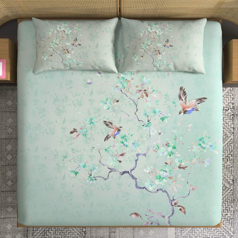 Super King Size 108 X 108 Inch Flat Double Bedsheet with 2 Pillow Covers Heavy Digital Print Combined with 3pcs Quilt Sets