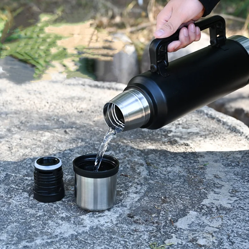 Super Large Capacity Paint Creative Thermos Cup 304 Stainless Steel Handle Hot KettlePortable Vacuum Flask Insulated Thermos Cup