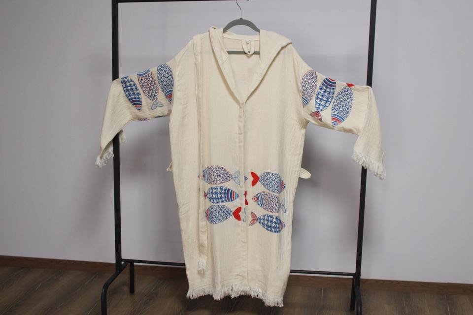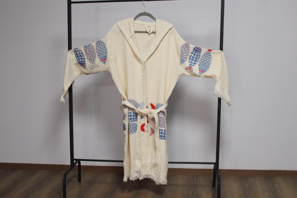 Super Luxury Turkish Muslin Fabric Bathrobe Suitable for Beach Home Hotel Sauna Use Printed Soft Quick Drying Hooded Washable