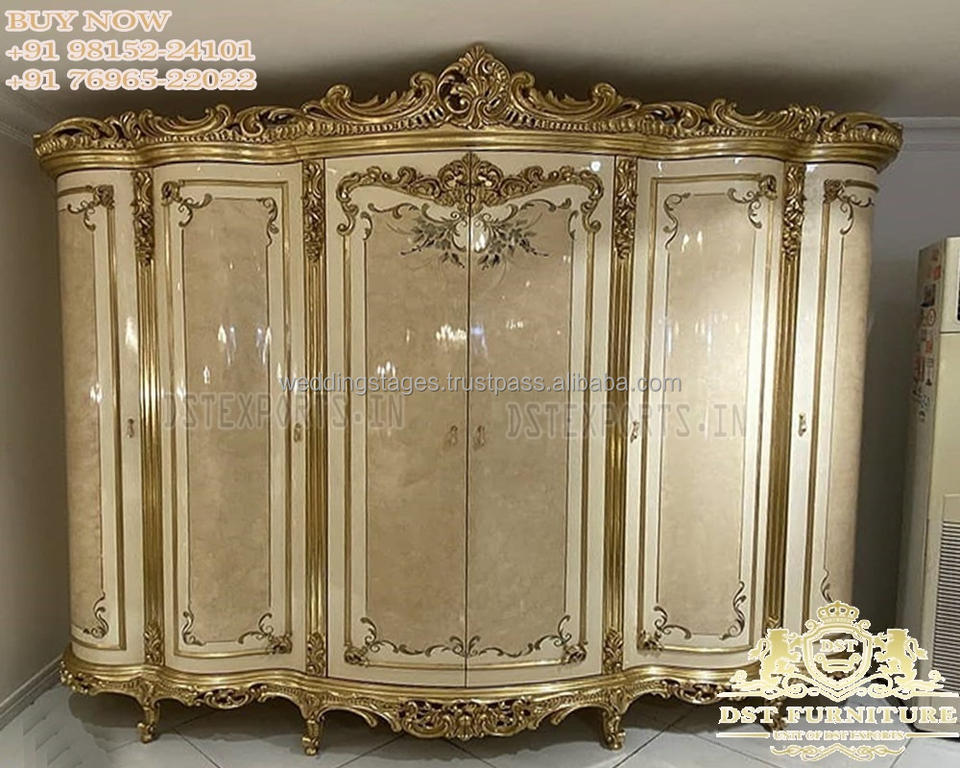 Super Luxury Wardrobe Furniture for Home European Theme Hand Carved Bedroom Armoire Maharaja Black Golden Wardrobe