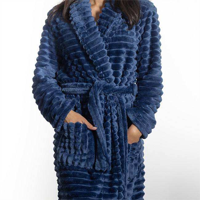 Super Plush Stripe Bathrobe Women Luxury Winter Fleece Bathrobe Soft Polyester Flannel Loungewear & Sleepwear for Adults