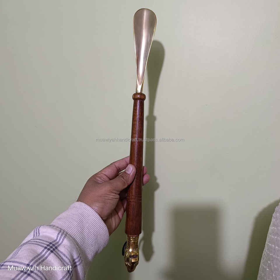 Super Quality Brass Shoe Horn With Wooden Handle Luxury Design Brass Shoe Horn Unique Style For Shoes Helper At Lowest Price
