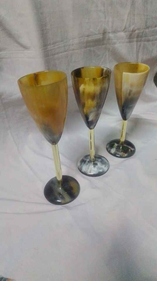 Super Quality High-End Natural Buffalo Horn Viking Cups Agate Glass Drinkingware Porcelain Restaurant Use Crystal Clear Beauty