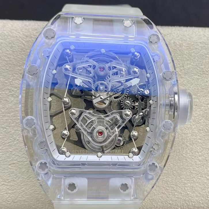 Super Quality Luminous waterproof Mechanical Crystal Watch EUR factory RM56-02 Tourbillon Movement Clear Crystal Skeleton watch