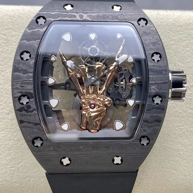 Super Quality waterproof Mechanical old fingers Watch YS factory tourbillon movement RM66 Carbon skeleton devil's hand watch