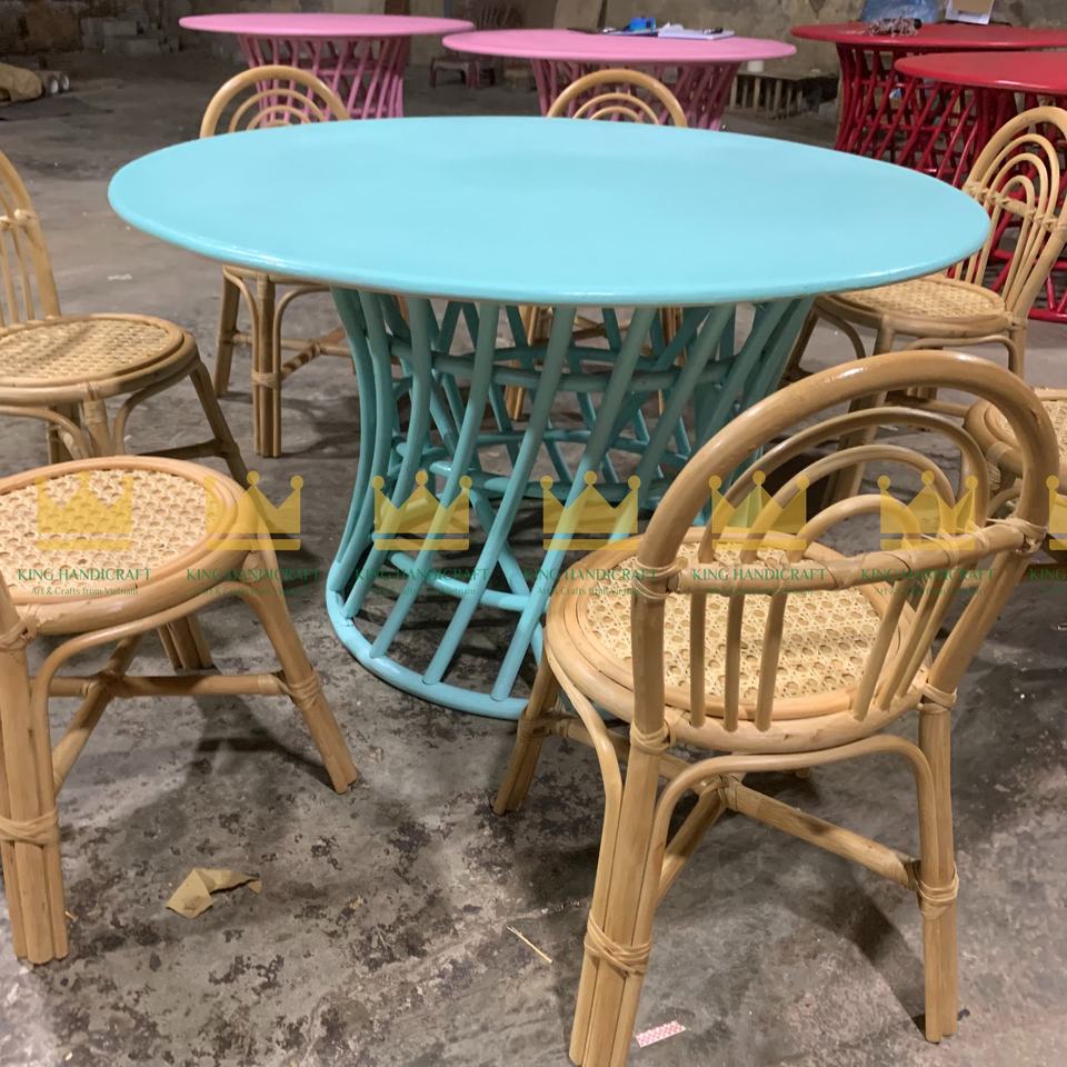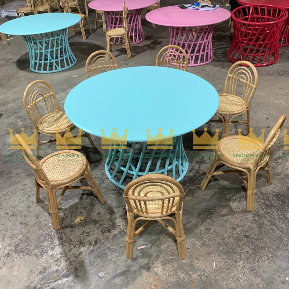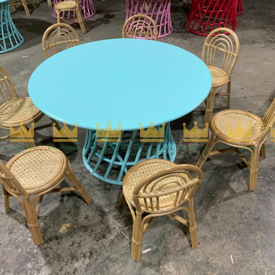 Super Sale Blue Color Rattan Round Table and Chair Set: the Perfect Playful Addition to Any Kids' Room