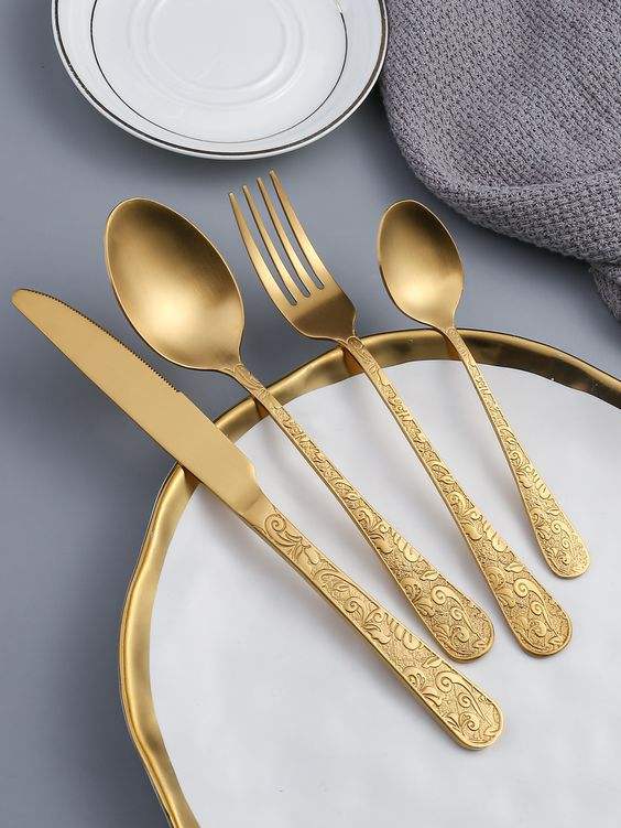 Super Selling Luxury Stainless Steel Cutlery Set Reusable Golden Silverware for Weddings and Table Decorative Spoon Included