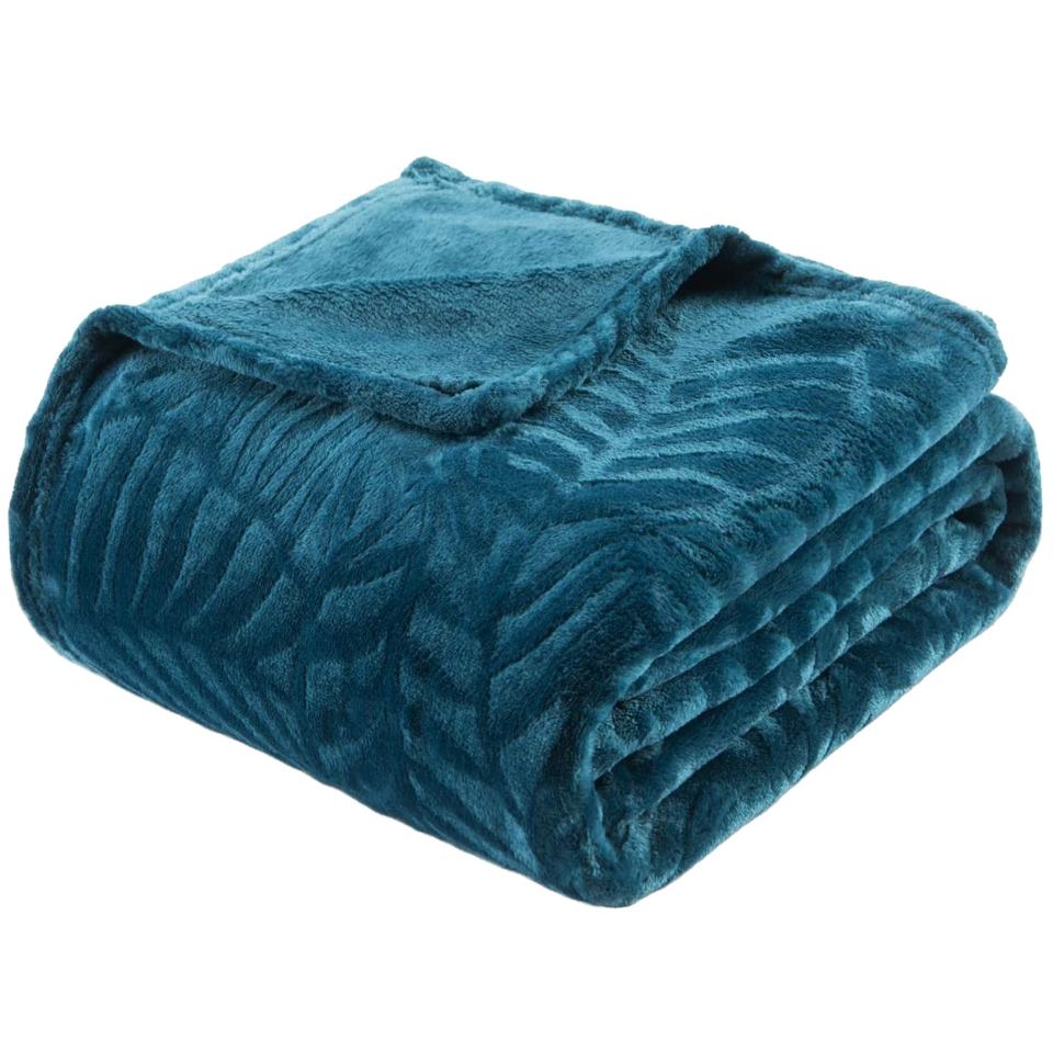 Super Soft Flannel Fleece Throw Blanket, Lightweight Cozy Warm Leaves Textured Plush Blanket for Bed Couch SofaBlue Coral