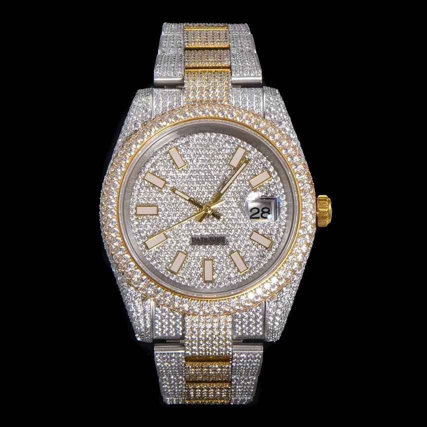Super quality diver mechanical Arabic watch 41mm TW factory 904l steel 2824 movement two-tone gold starry sky ice diamond watch