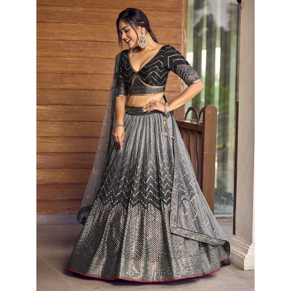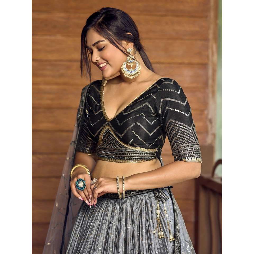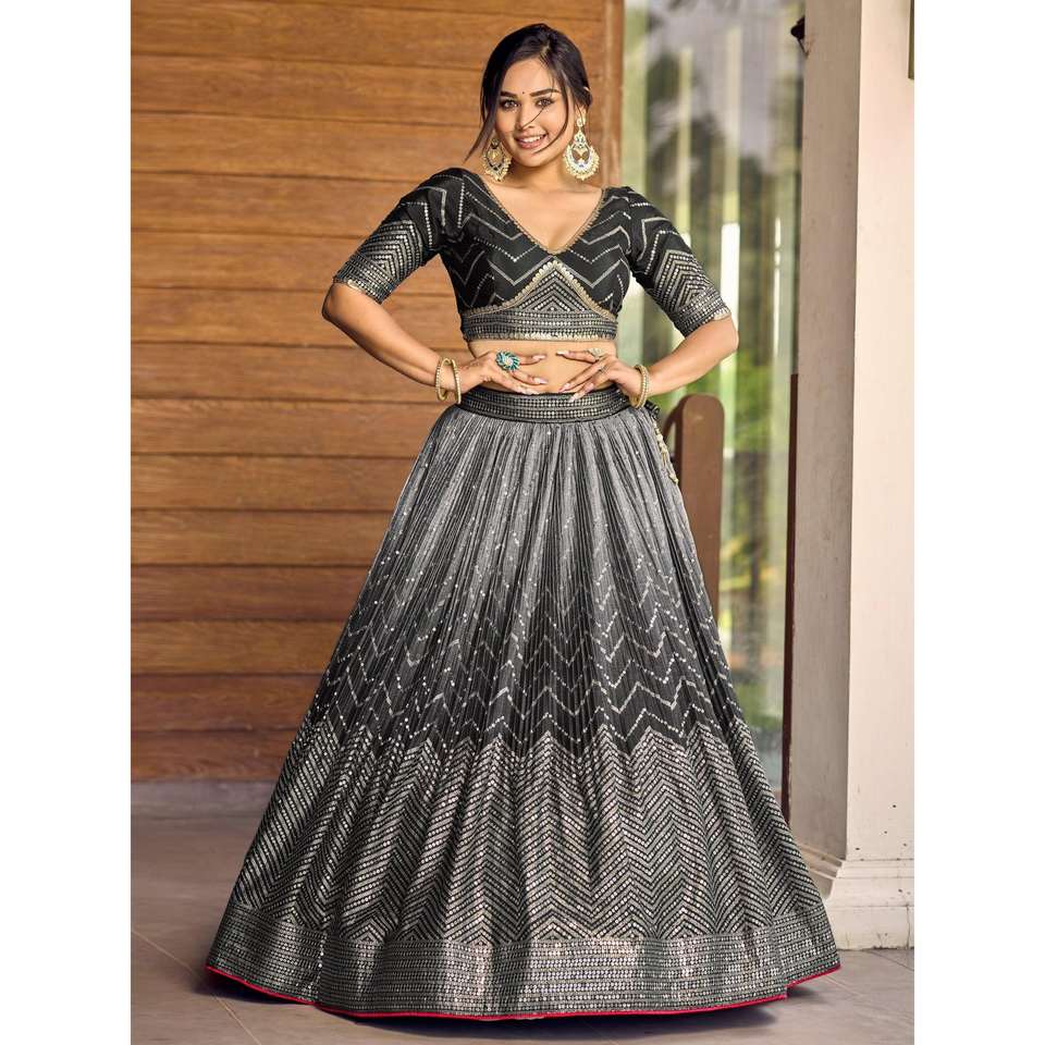 Superb Black Sequins Chinon Events Wear Lehenga Choli with Dupatta Career Dresses