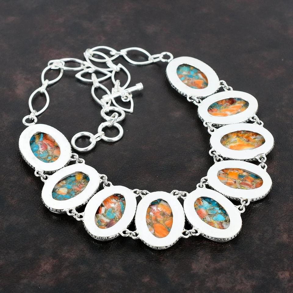 Natural Spiny Oyster Turquoise Gemstone silver bracelet