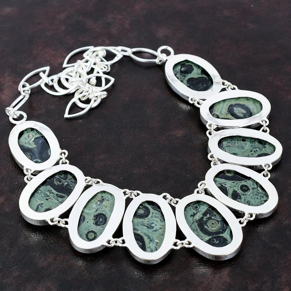 Product Name:Natural Kambaba Jasper Gemstone silver bracelet