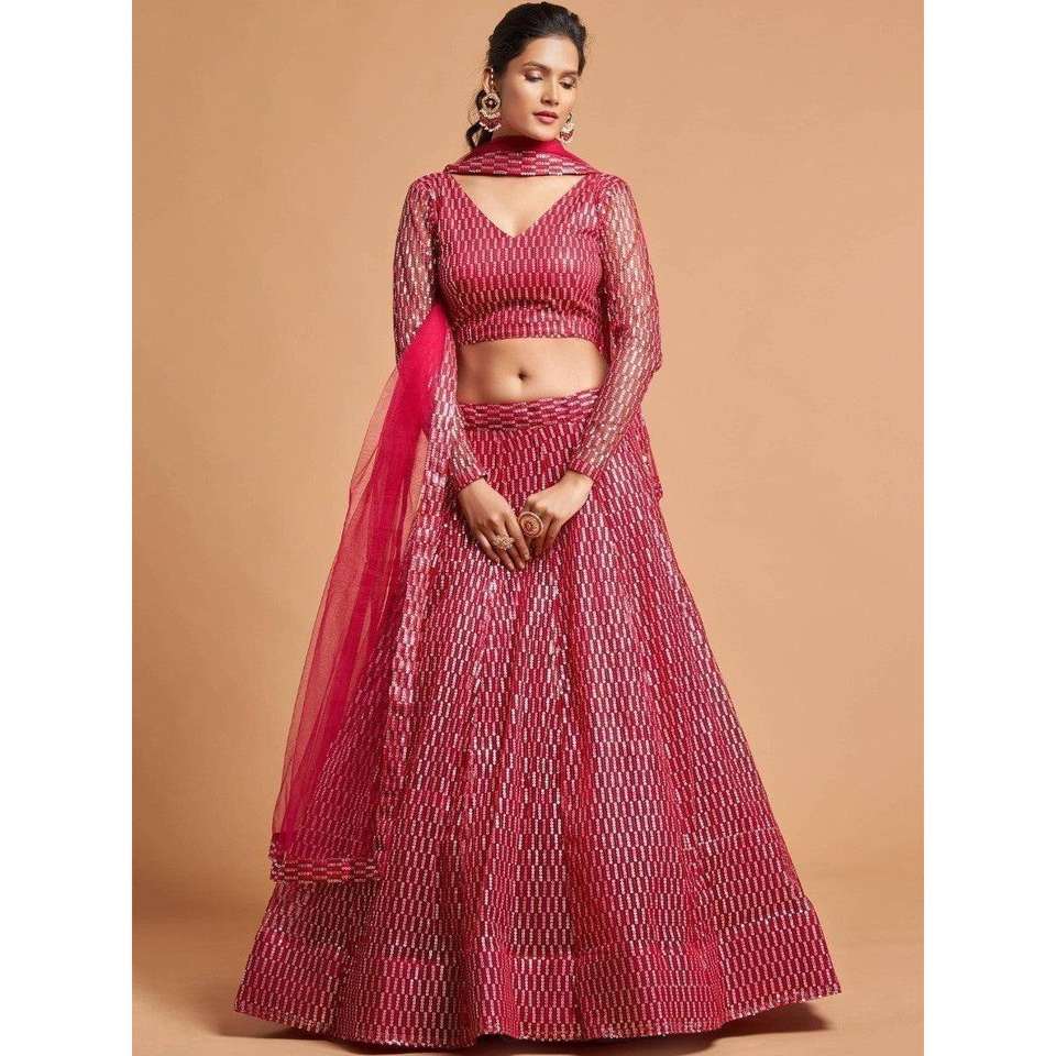 Superb Hot Pink Thread Embroidered Net Party Wear Lehenga Choli Elegant Prom Dresses